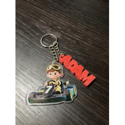 Keychain with name and go-kart pendant