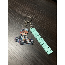 Porte-clés avec prénom et pendentif kart