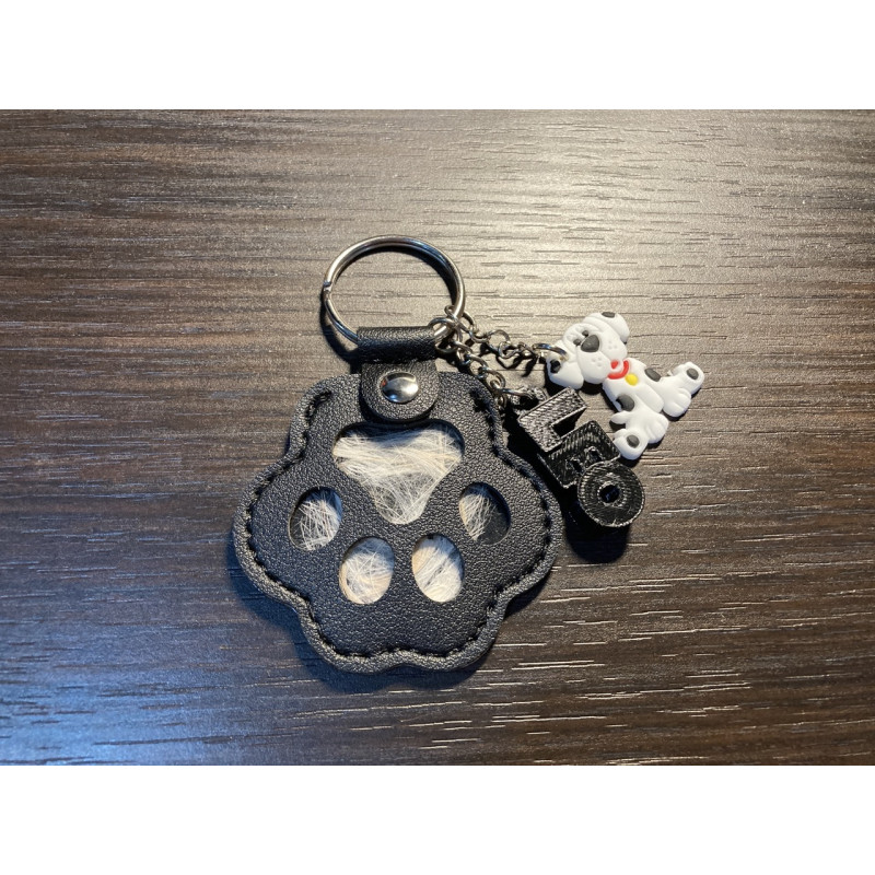 Portachiavi con nome e zampa, da riempire con il pelo del tuo animale domestico.